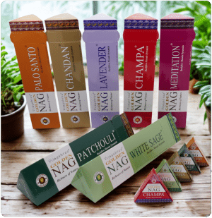 Deze stokjes en kegels branden gelijkmatig met een zachte rook. De elegante verpakking maakt ze perfect als cadeau. Veel varianten zijn veganistisch, diervriendelijk en handgemaakt. Golden Nag is geschikt voor cadeau-, wellness- en spirituele winkels.