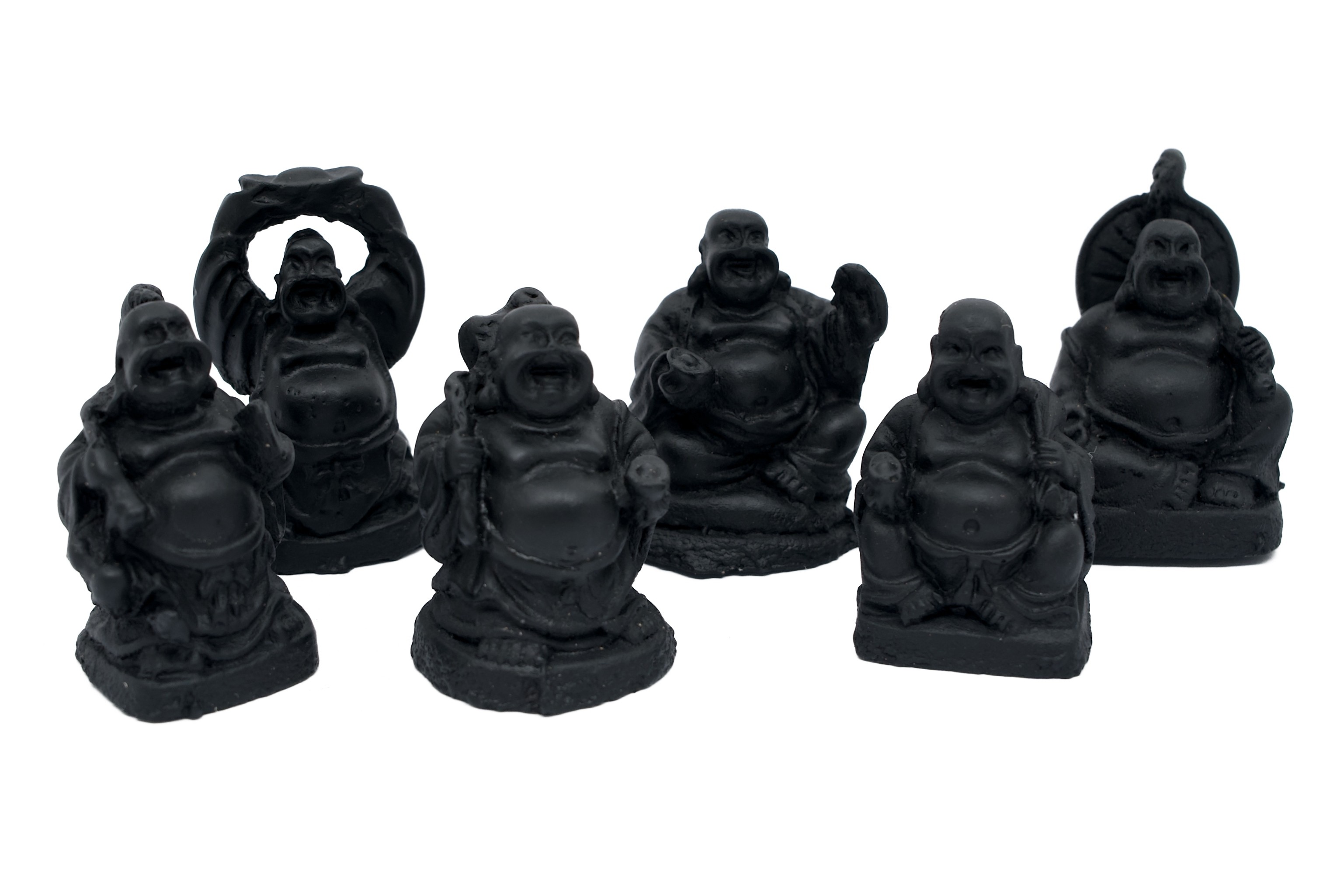 8 cm Zwarte Staade Lachende Boeddha Set (6 stuks)