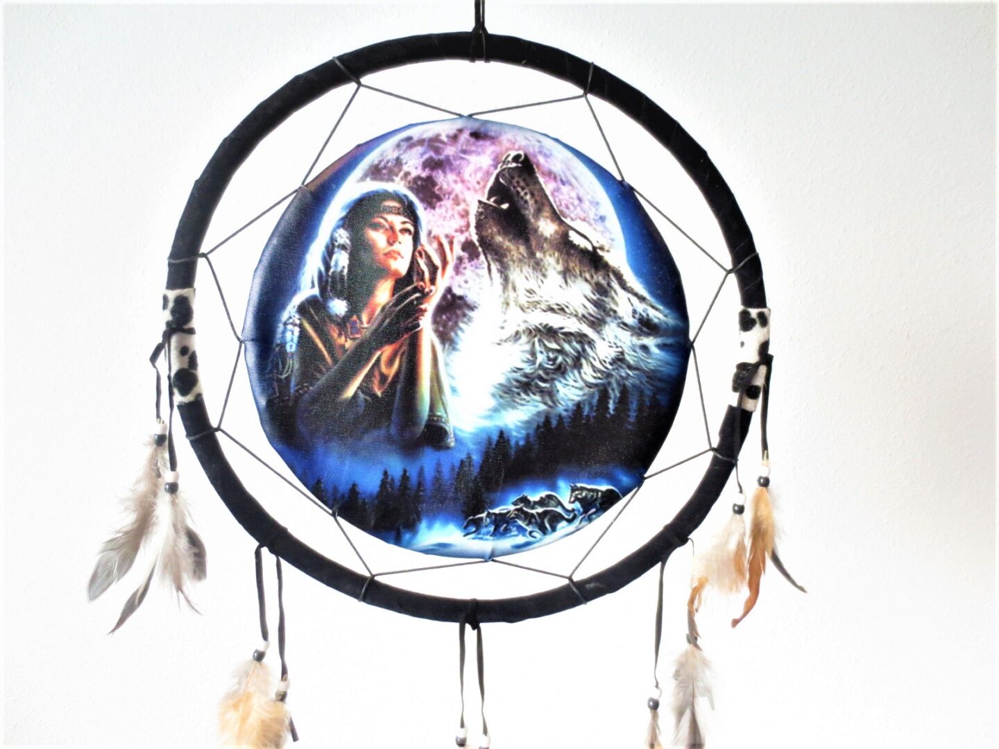 Groothandel – 38cm Dreamcatcher Indiase vrouw met Wolf (II)