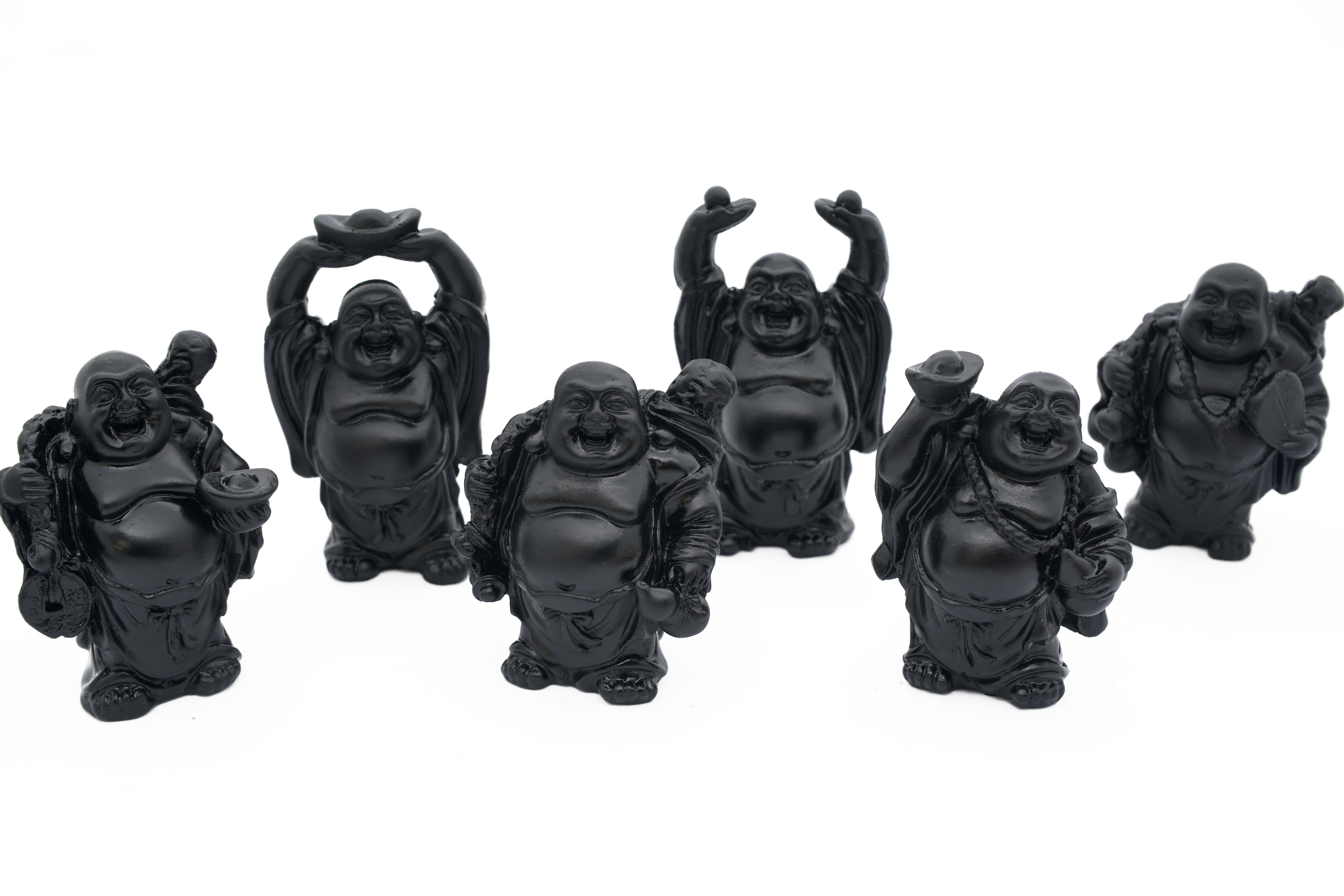 Groothandel – Set van 6 Lachende Boeddha Beeldjes – Welvaart & Geluk Collectie