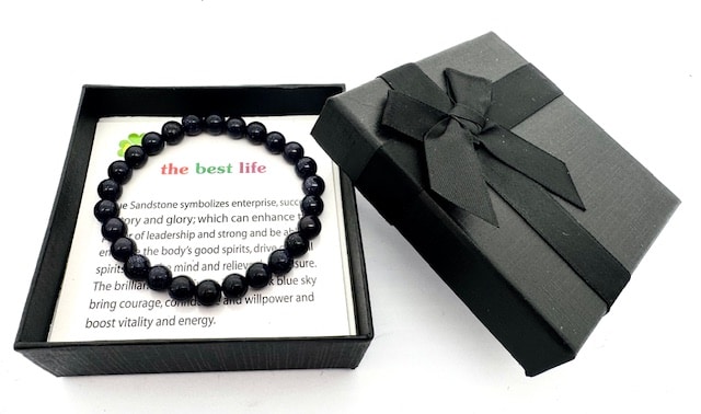 Groothandel – 8 mm Blauwe Zandsteen Edelsteen Armband – Cadeaudoos Inclusief