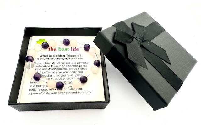 Groothandel – 8 mm Gouden Driehoek (I) Edelsteen Armband – Cadeaudoos Inclusief
