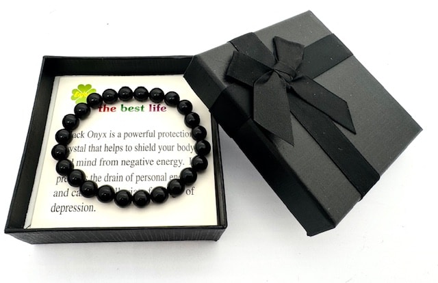 Groothandel – 8 mm Zwarte Onyx Edelsteen Armband – Cadeaudoos Inclusief