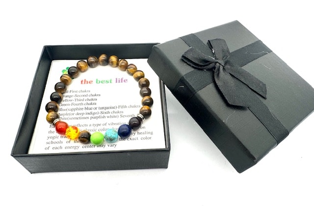 Groothandel – 7-Chakra Tijgeroog Edelsteen Armband – Inclusief Cadeaubox