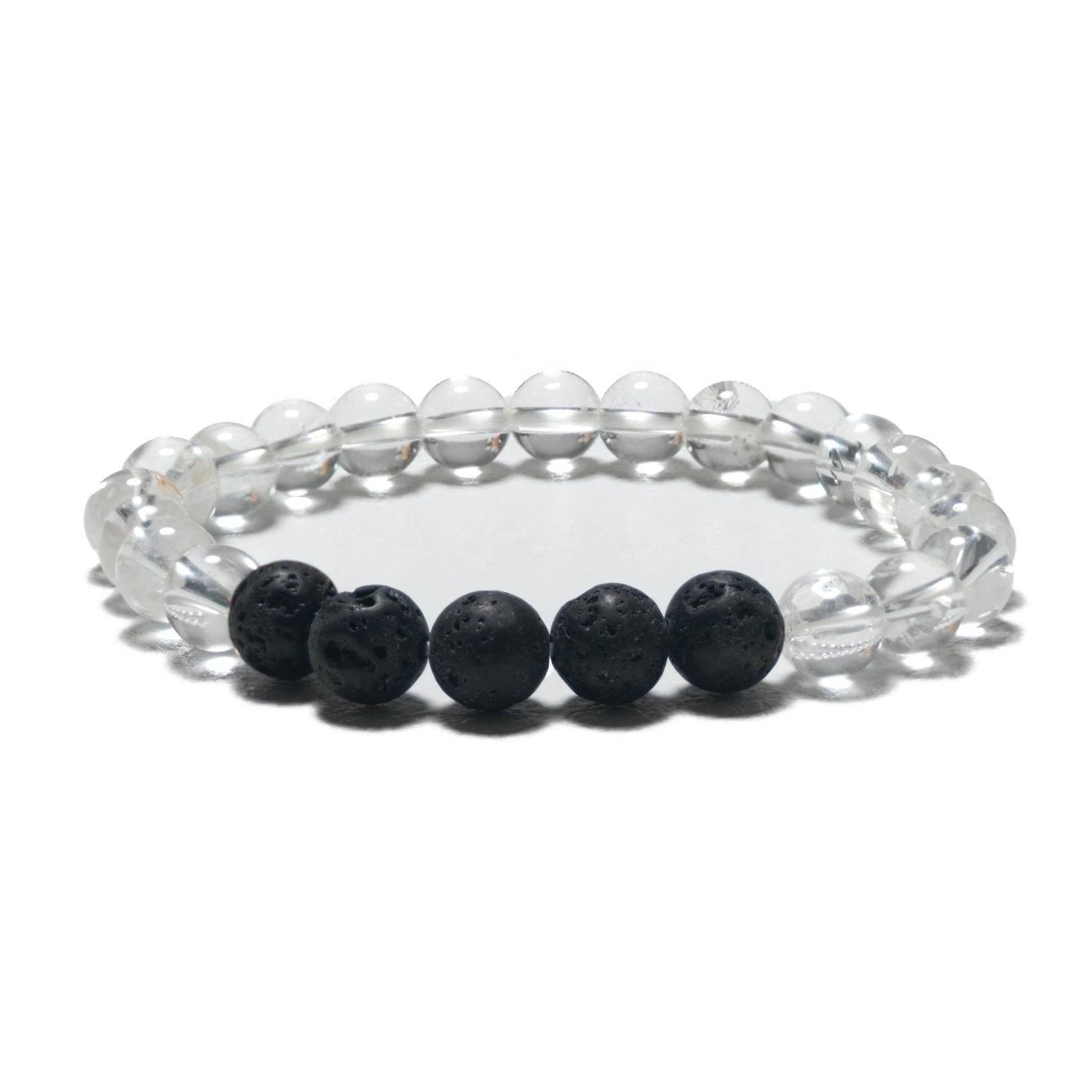 Groothandel – 8mm Armband zonder Cadeaudoos – Bergkristal en Lavasteen
