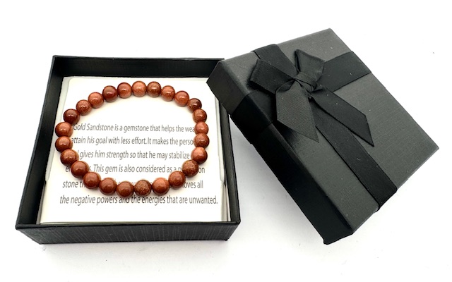 Groothandel – 8 mm Gouden Zandsteen Edelsteen Armband – Cadeaudoos Inclusief