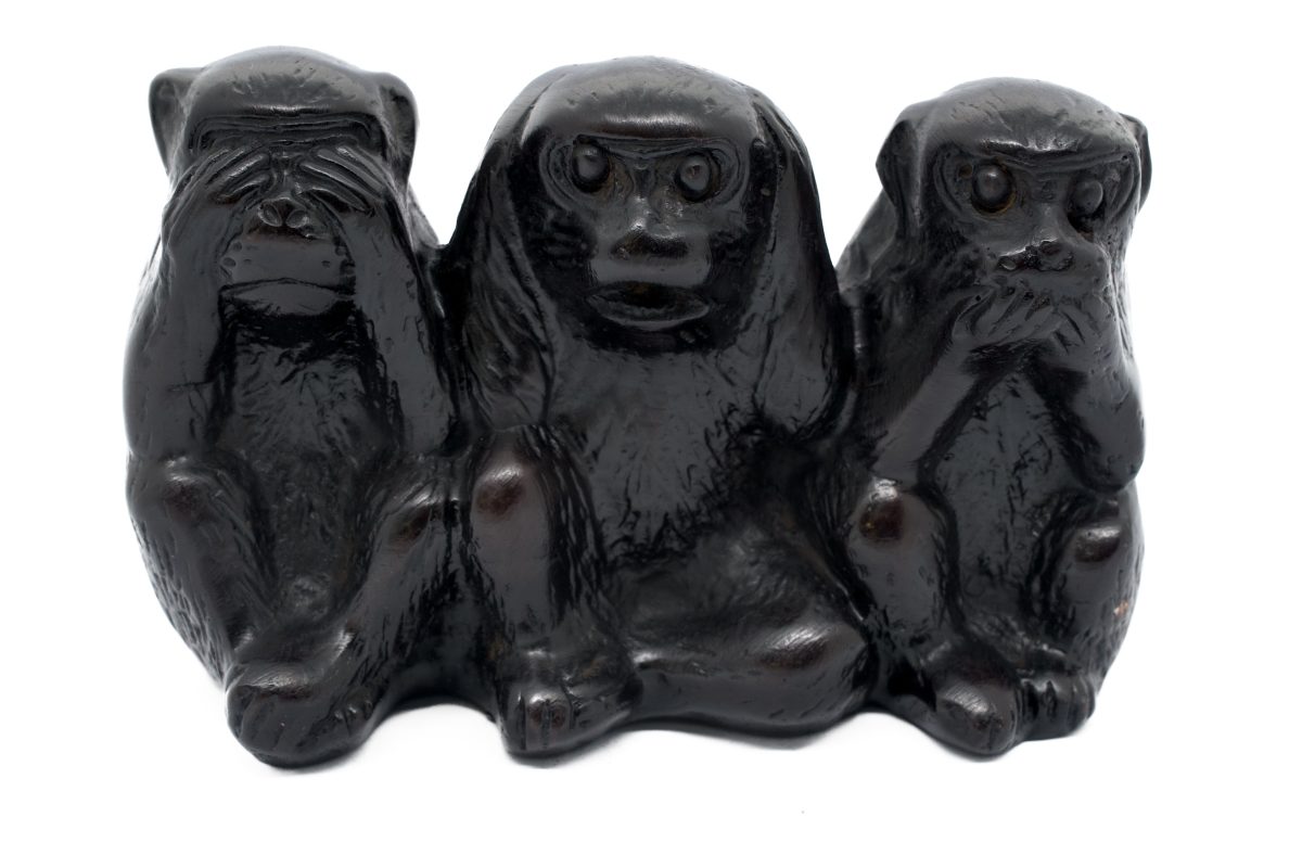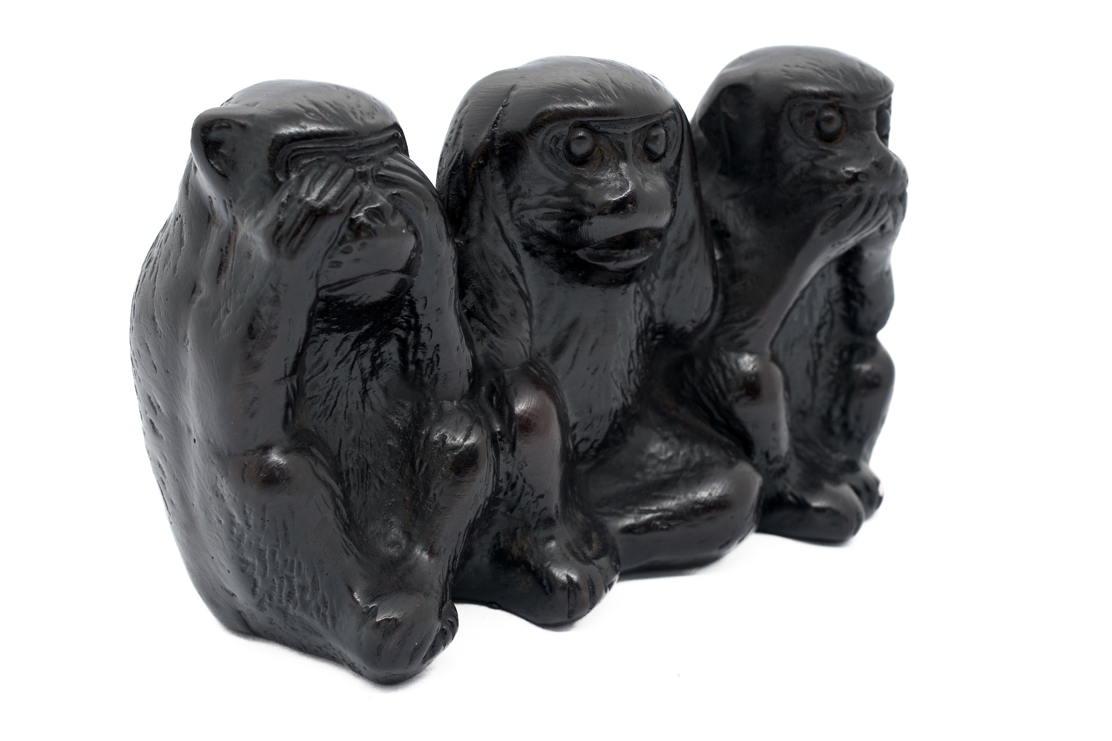 Design: Drie wijze apen in Zie Geen Kwaad, Hoor Geen Kwaad, Spreek Geen Kwaad poses