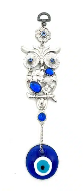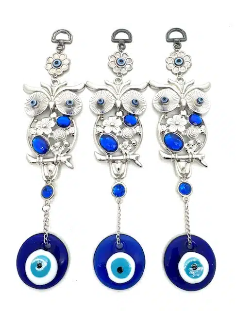 Groothandel – Blauwe Boze Oog Hanger met Uil, Set van 3