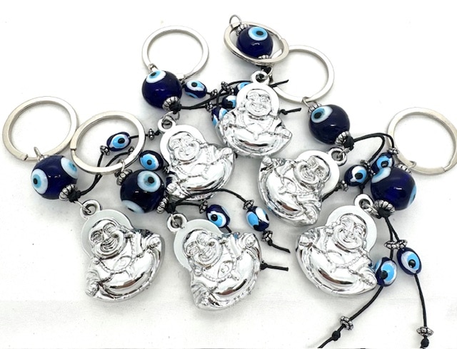 Groothandel – Blauwe Boze Oog Sleutelhanger met Boeddha II Set van 6
