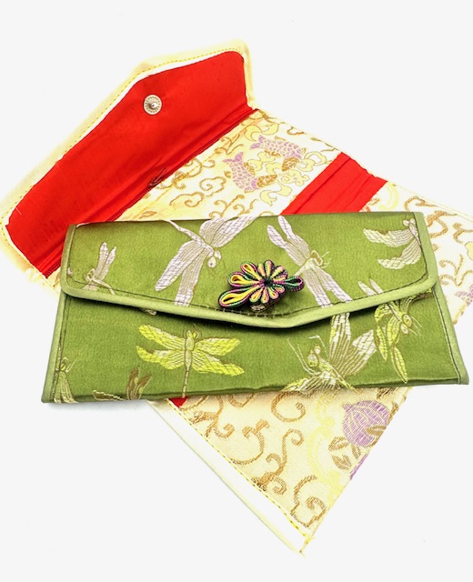 Dit elegante brocade etui is voorzien van een traditioneel libellenpatroon en een zachte stoffen voering, afgewerkt met een stevige drukknoopsluiting. Handgemaakt in Aziatische textielstijl en een mooie combinatie van uitstraling en dagelijks gebruiksgemak.