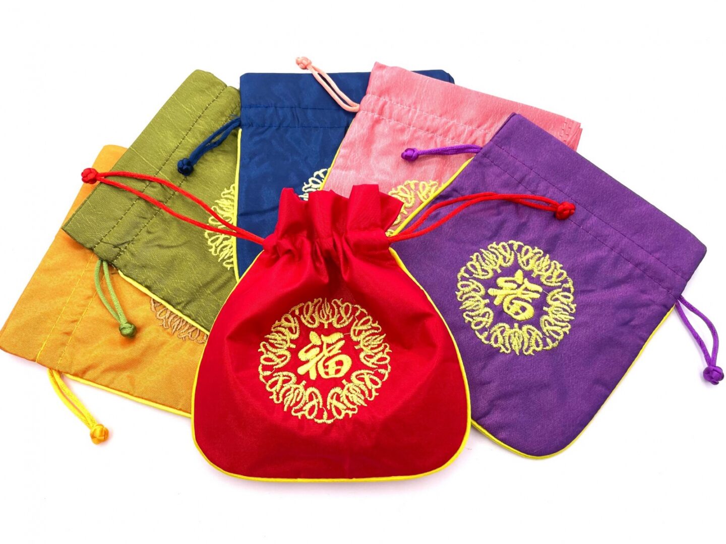 Deze mooie buidels met het ‘Fu’ geluksteken zijn ideaal om kleine spullen erin te bewaren zoals edelstenen of sieraden.