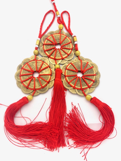 Groothandel – Feng Shui Chinese Geluksmunten met Rode Kwastje Set van 3