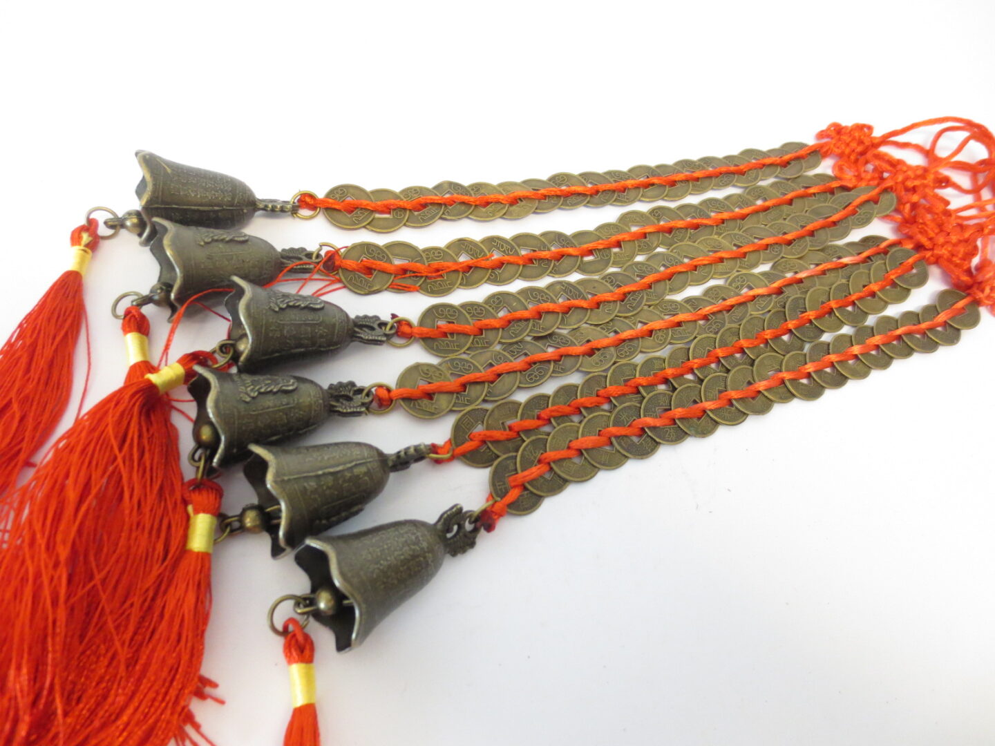 Chinees geluksmuntjes met bel gelukshangers set van 6 De hangers kunnen overal opgehangen worden voor zowel geluk als decoratie.