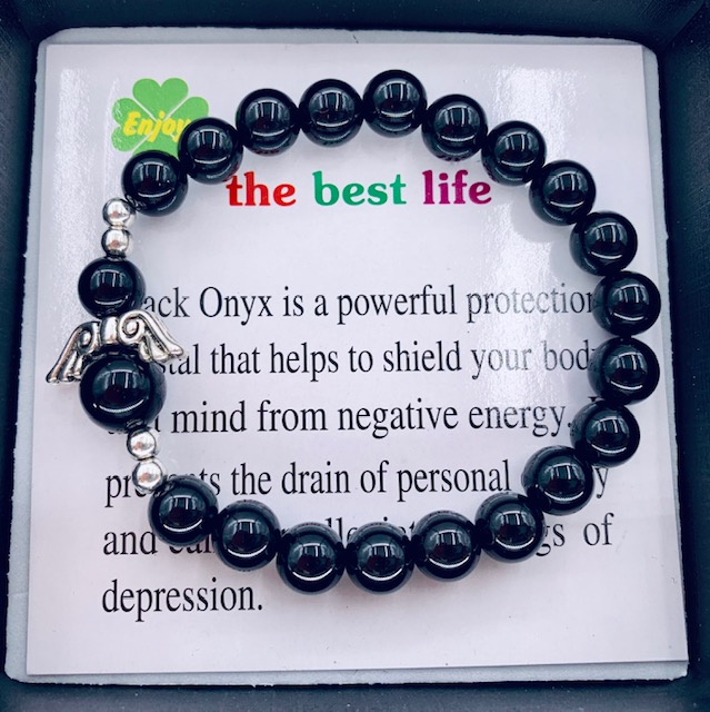 8mm Engelen Armband met Doos – Onyx