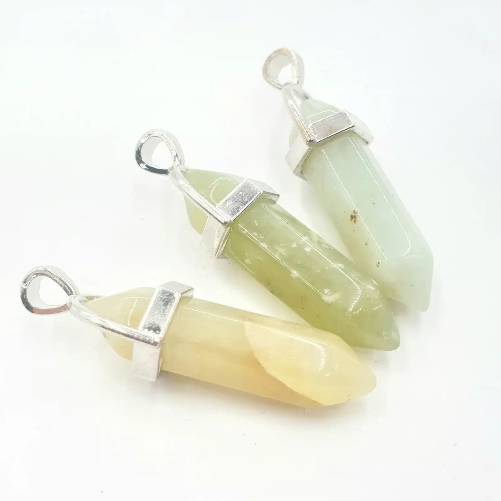 Edelsteen pendant hanger, kan aan een ketting gehangen worden.Verkrijgbaar in verschillende soorten edelstenen.afmeting = 4cm. Minimale afname is 3 stuks. Prijs is per stuk.