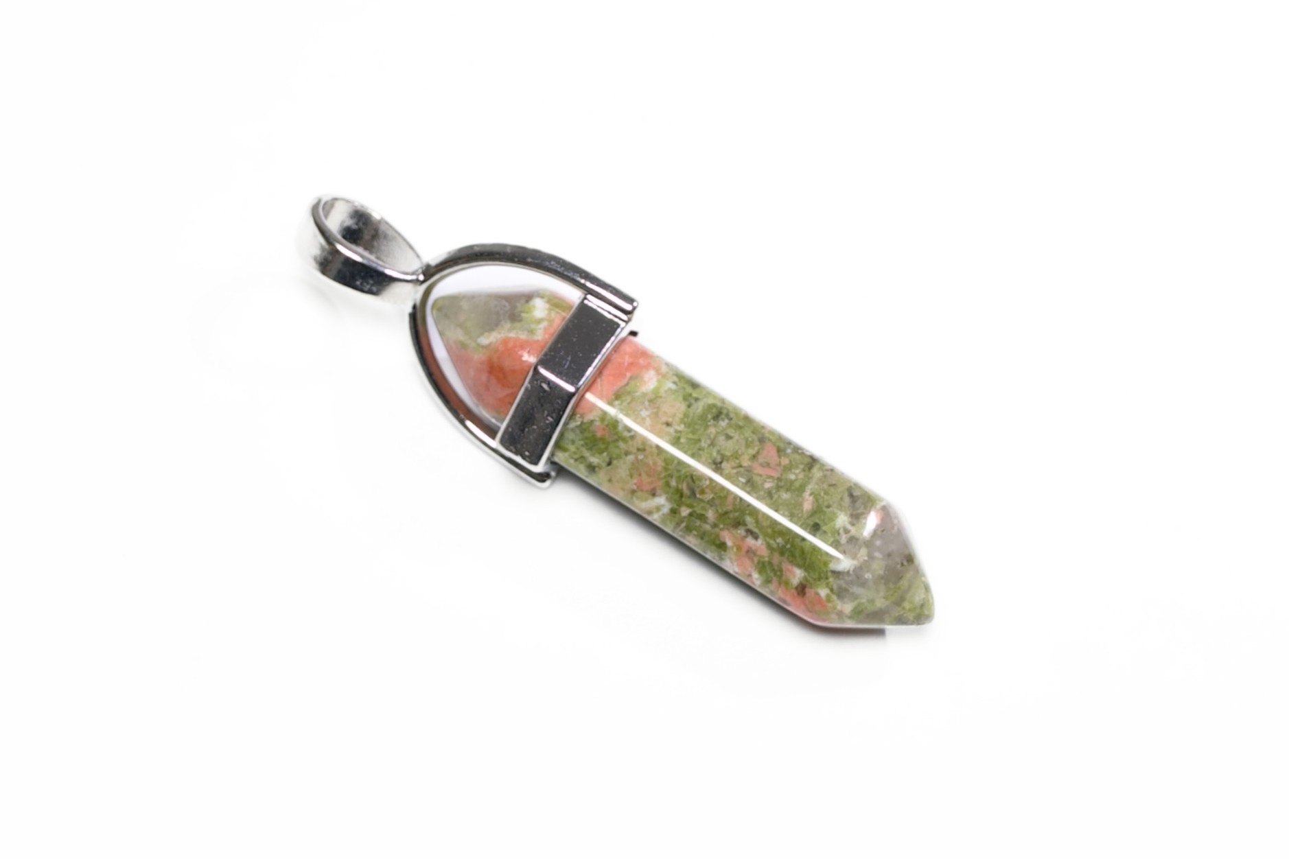 Edelsteen pendant hanger, kan aan een ketting gehangen worden.Verkrijgbaar in verschillende soorten edelstenen.afmeting: 4cm gewicht: 6 gram. Minimale afname is 3 stuks. Prijs is per stuk en Excl.BTW