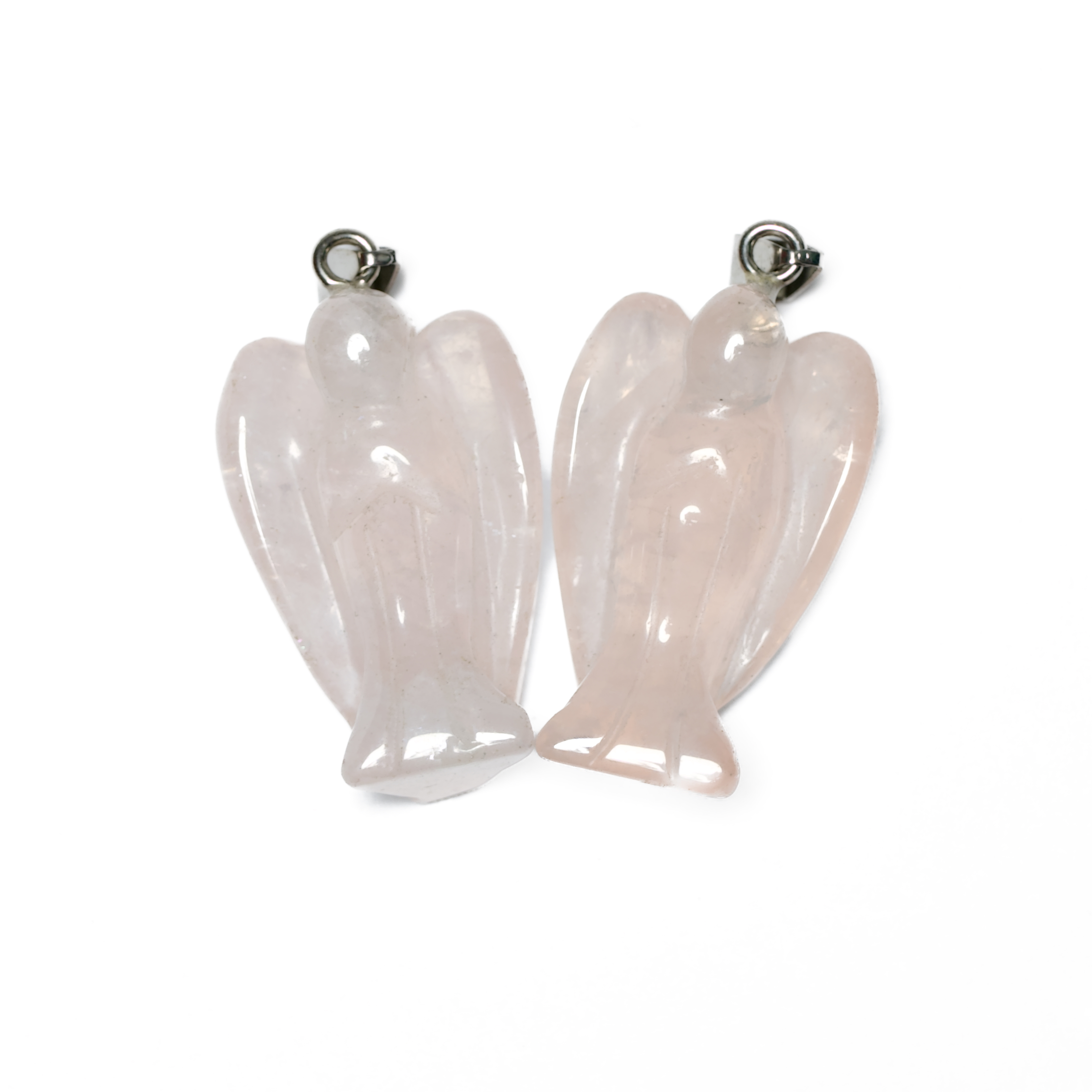 Groothandel – Rozenkwarts Edelsteen Engel Hanger (2 stuks)
