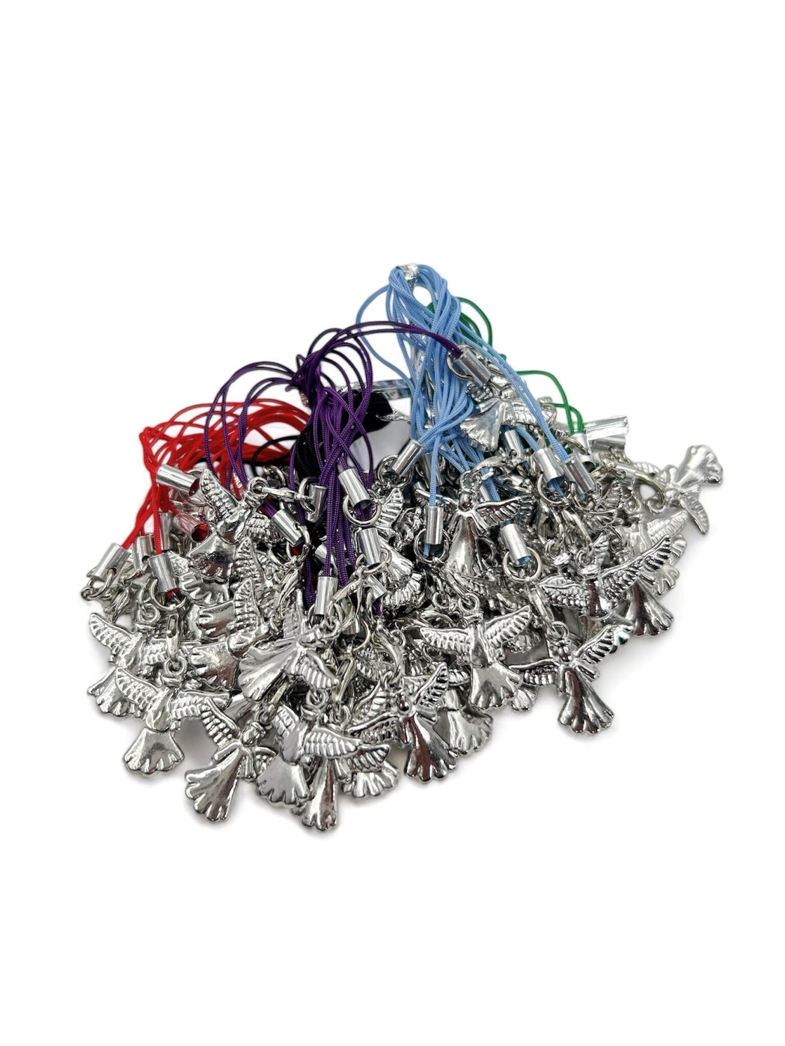 50 stuks metaal angel gelukshangers in een zakje, vijf gemix kleuren van lusjes in een zakje. elke kleur van 10 stuks.