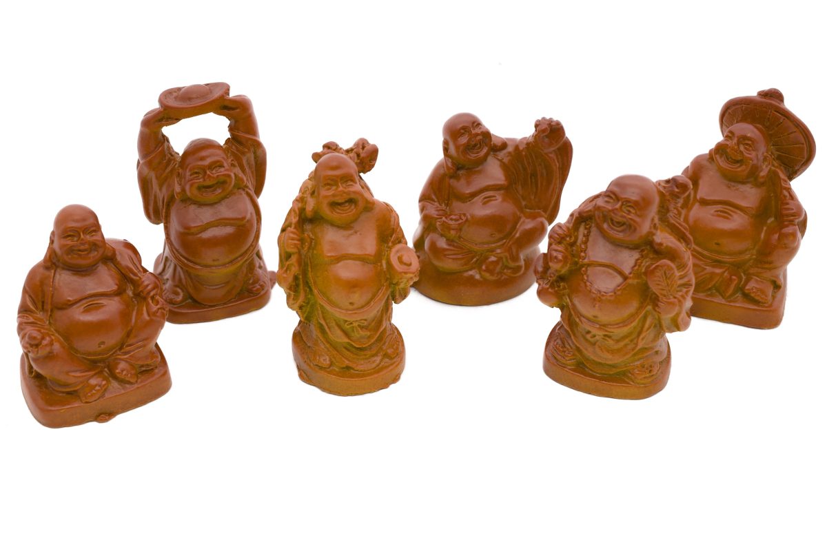 Groothandel – Set van 6 Lachende Boeddha Beeldjes – Welvaart & Geluk Collectie