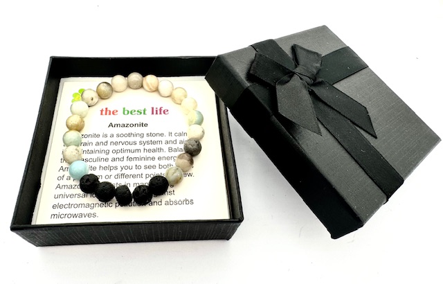 Groothandel – 8 mm Amazoniet en Lavasteen Edelsteen Armband – Cadeaudoos Inclusief