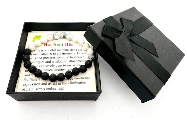 Groothandel – 8 mm Howliet en Lavasteen Edelsteen Armband – Cadeaudoos Inclusief