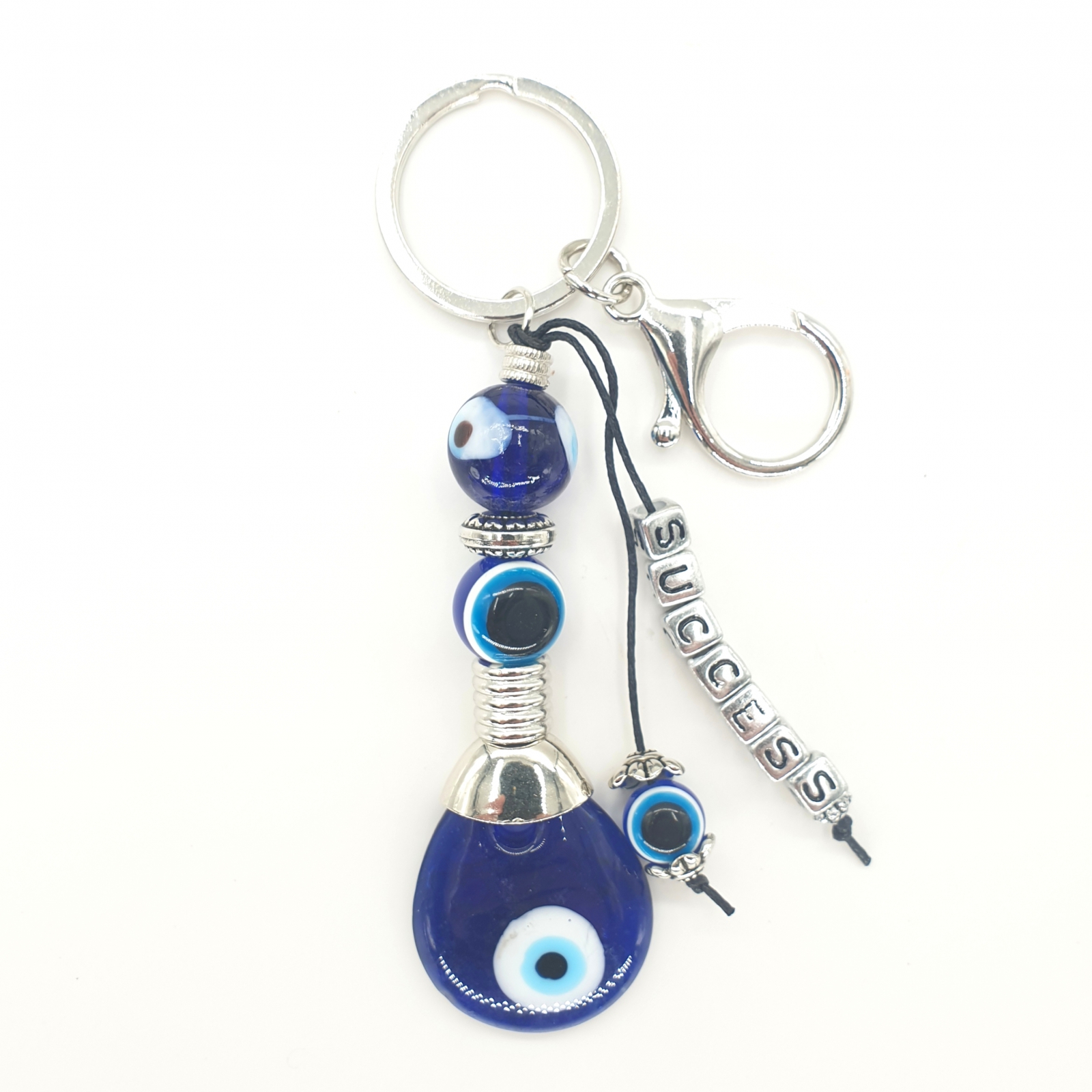 Deze set van 6 sleutelhangers is voorzien van de beschermende Boze Oog kraal en het geschreven “succes” symbool. Het Boze Oog weert negatieve energie af, terwijl de sleutelhanger staat voor succes. Stijlvol en betekenisvol, perfect voor sleutels, tassen of als attent cadeau met een spirituele betekenis.