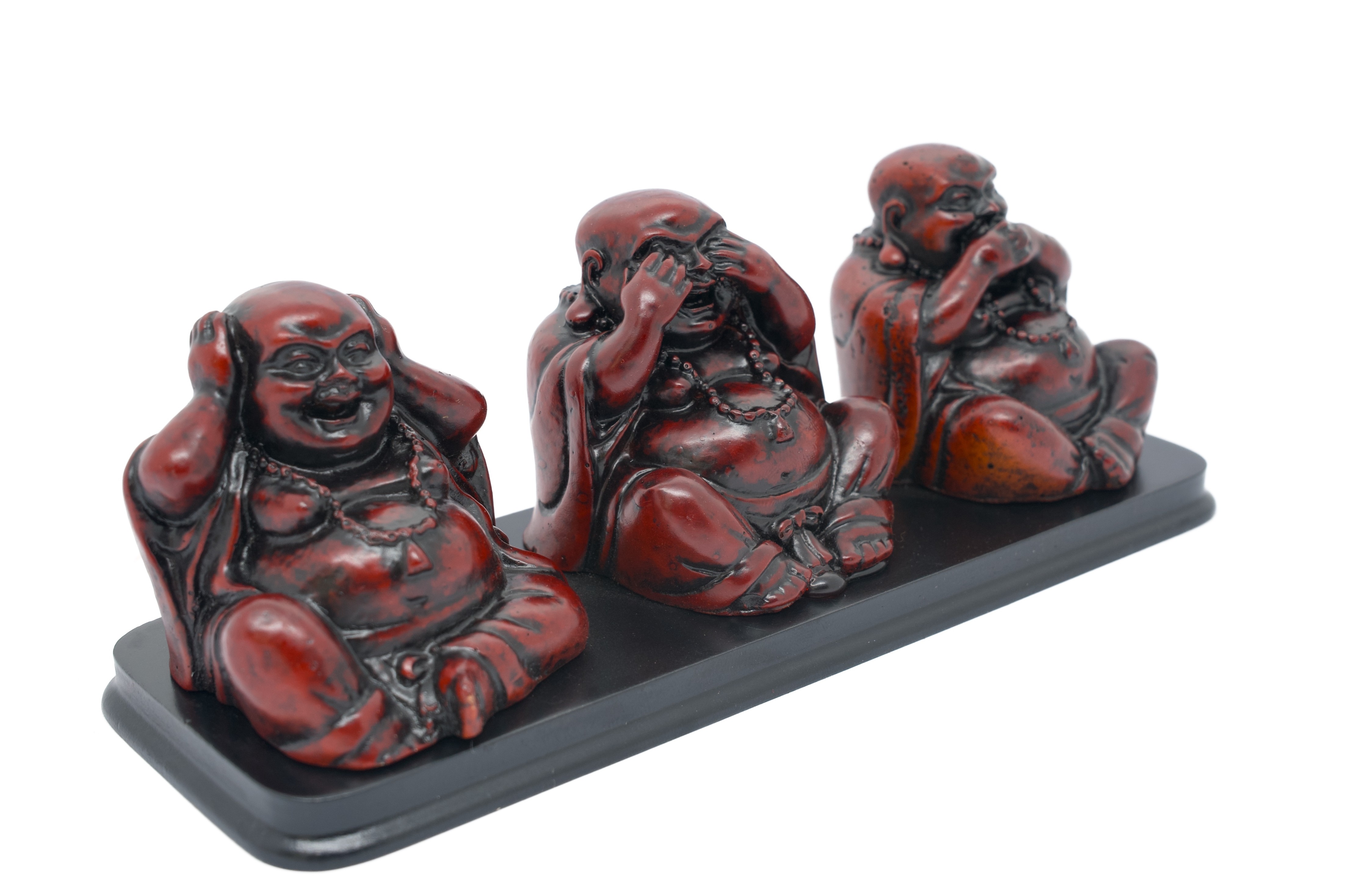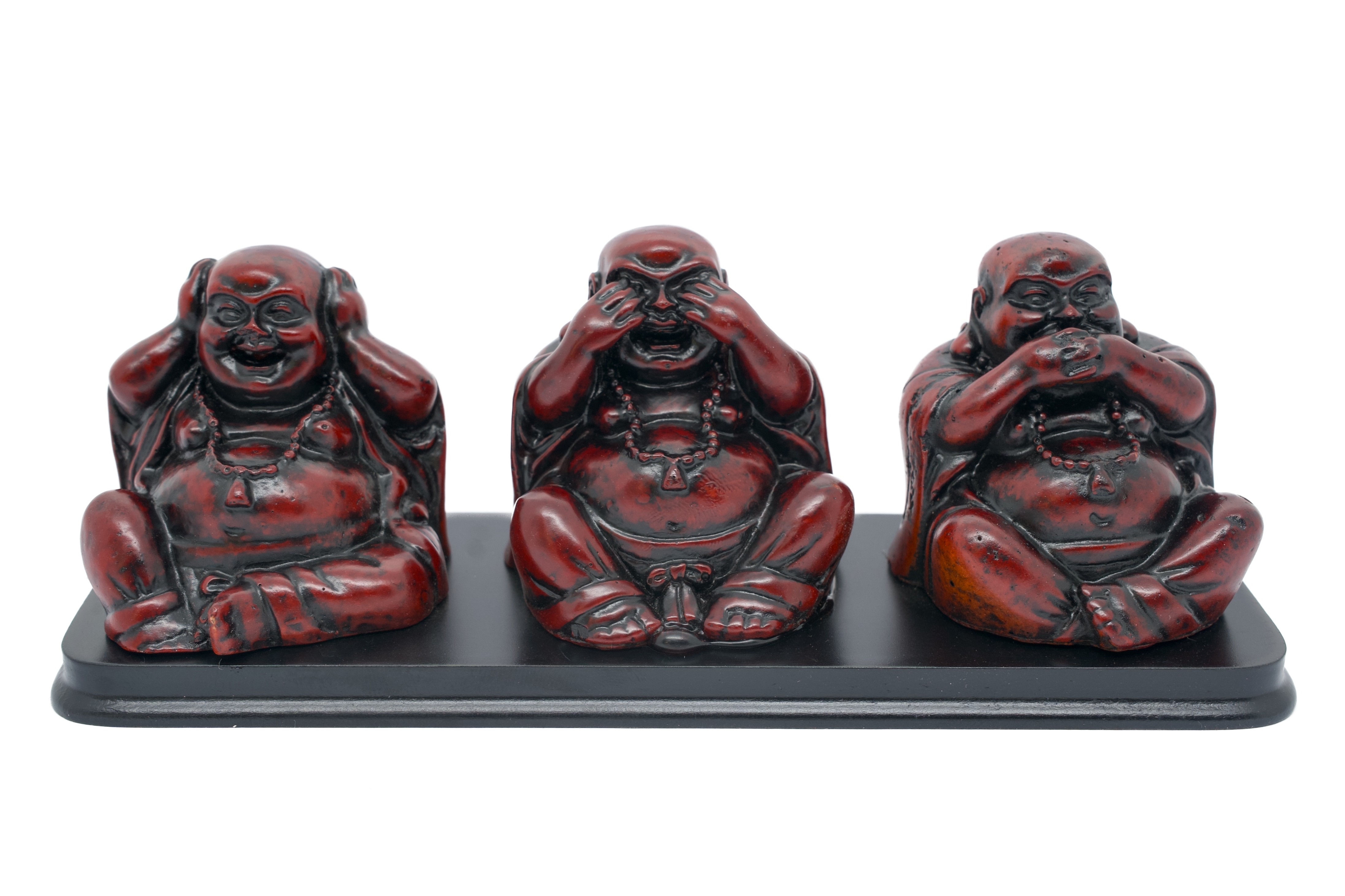 Groothandel – Hoor, Zie, Spreek Geen Kwaad – Lachende Boeddha Trio op Basis | Rood Polysteen