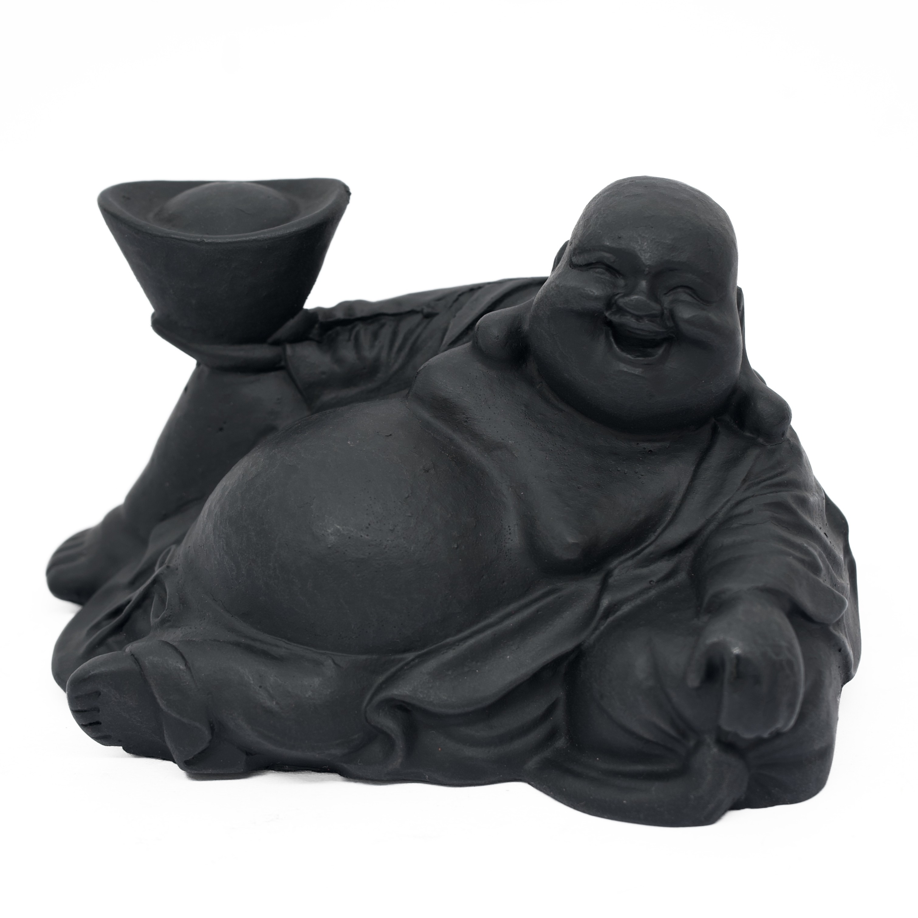 De Lachende Boeddha staat wereldwijd bekend als symbool van geluk, rijkdom en succes. De geldzak achter hem vertegenwoordigt overvloed en nieuwe kansen, terwijl zijn vrolijke uitstraling positiviteit en innerlijke vervulling uitstraalt. De ontspannen liggende houding voegt een gevoel van rust en balans toe, waardoor dit beeld perfect past in serene interieurs.