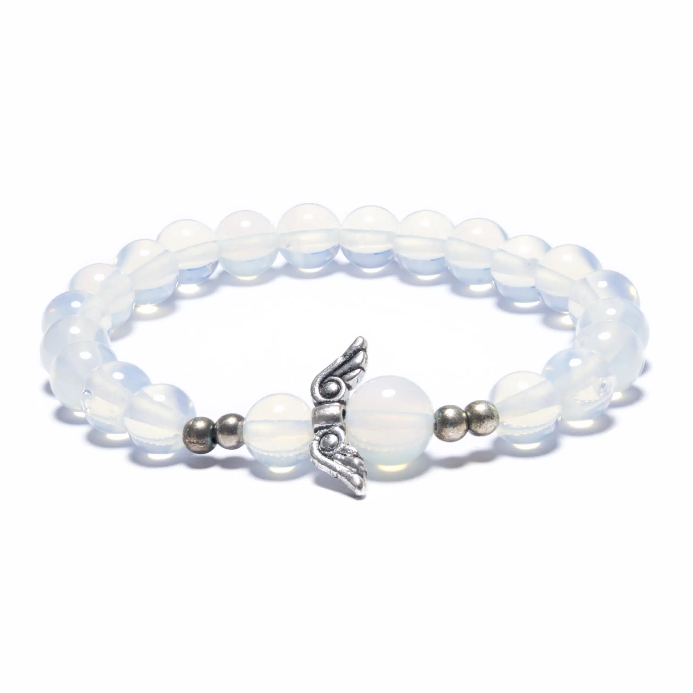 19 stuks 8mm kralen edelsteen armband met zilver Engelen.