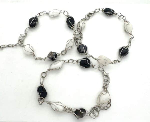 Groothandel Gepolijste Edelsteen Armband Draadgewikkeld – Onyx & Milky Quartz (Klein)