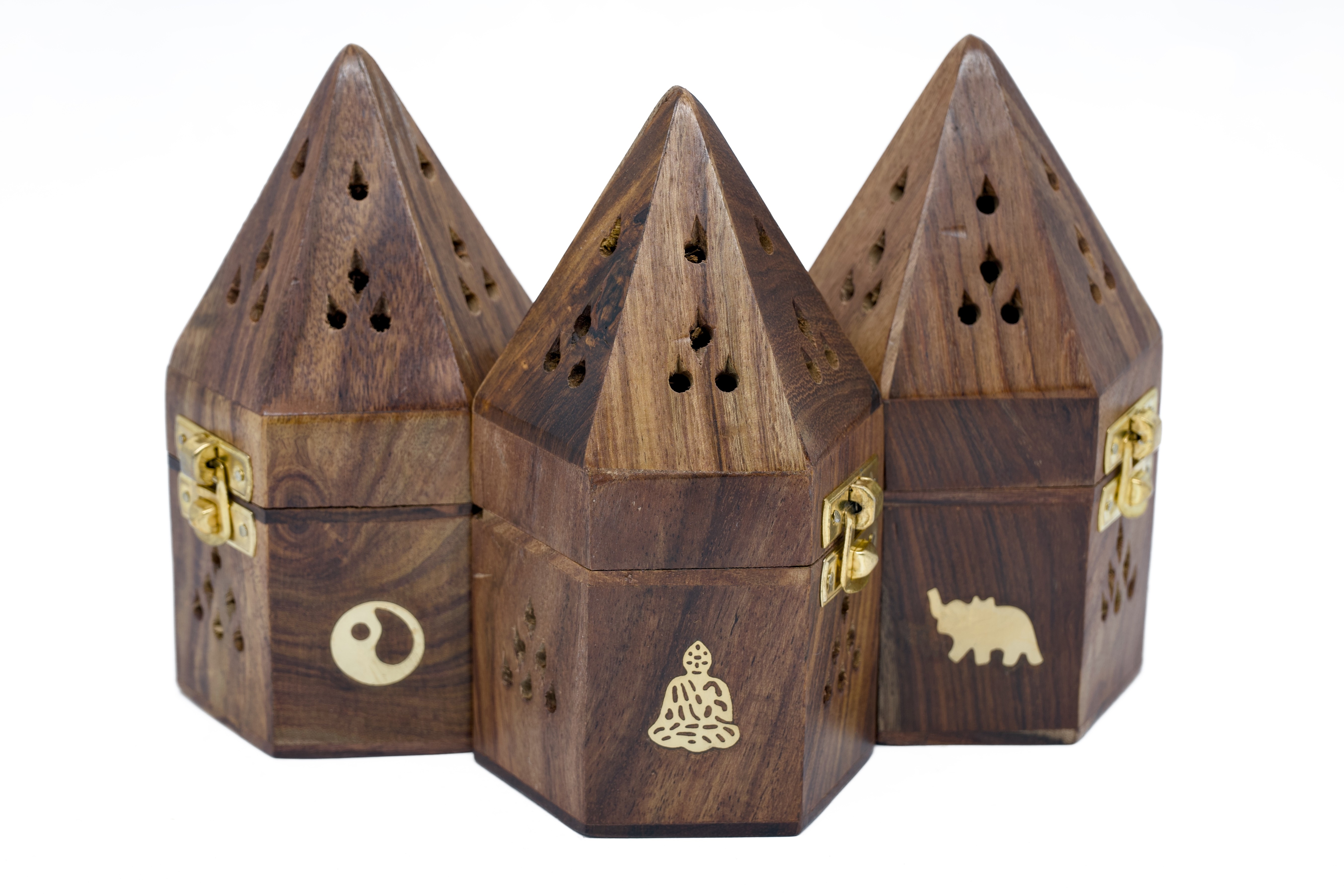 Plaats eenvoudig een wierookkegel binnenin, vervang het deksel en kijk hoe geurige rook prachtig door de decoratieve uitsnede gaten op het piramide deksel en zijpanelen drijft — uw ruimte vullend met heerlijke geur terwijl een hypnotiserend visueel spektakel wordt gecreëerd.
