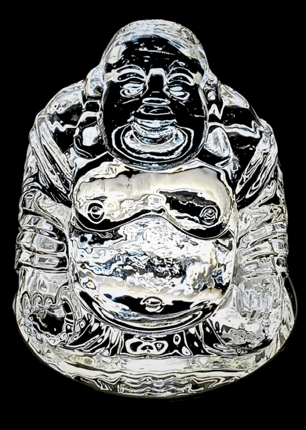 Kleine staande Happy Boeddha van kristalglas – 7,3 cm