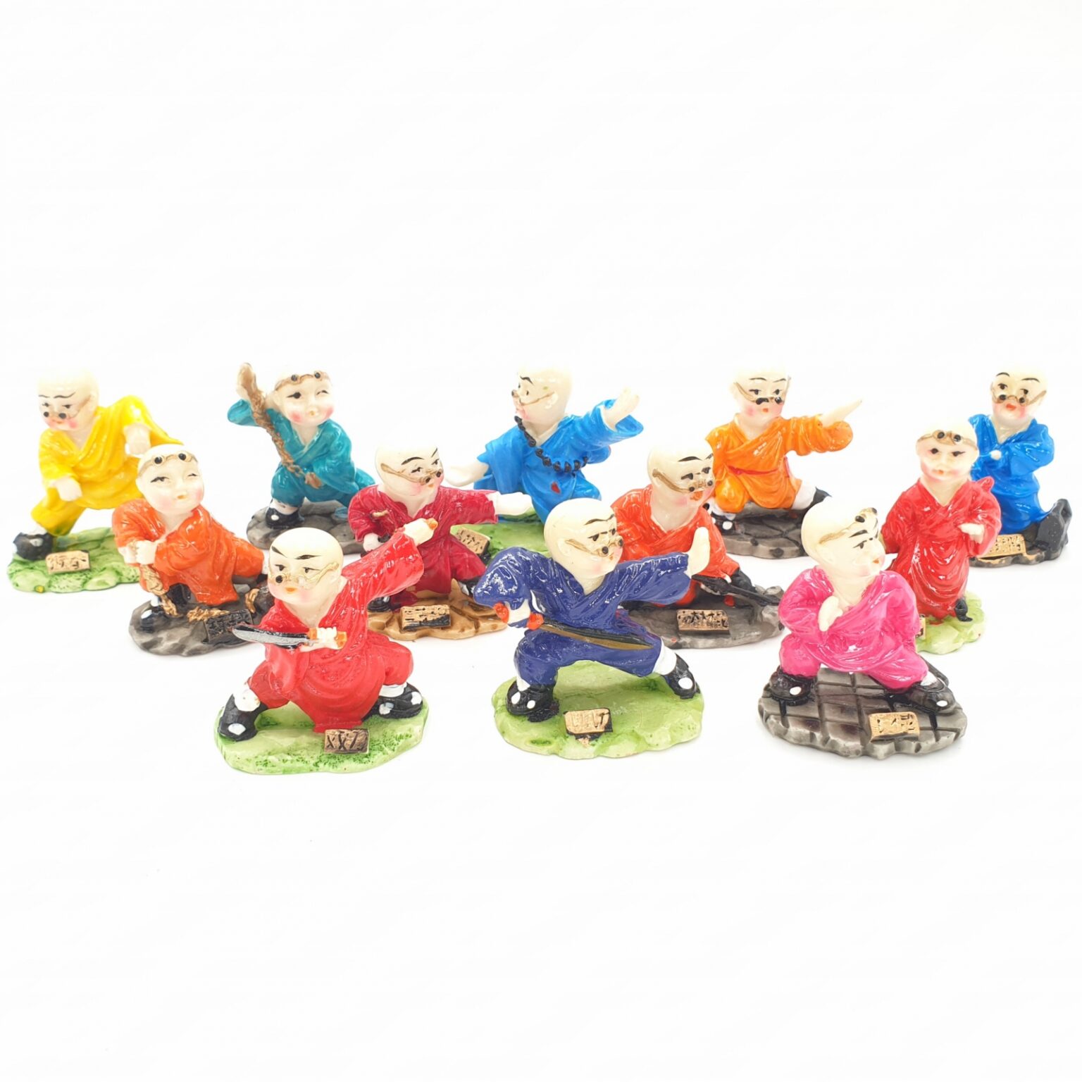 Shaolin Kung Fu Monnik set (12st) Een set bestaand uit 12 Shaolin poppetjes. Gemaakt van polyresin. Prijs is voor 1 set bestaand uit 12 Shaolin poppetjes