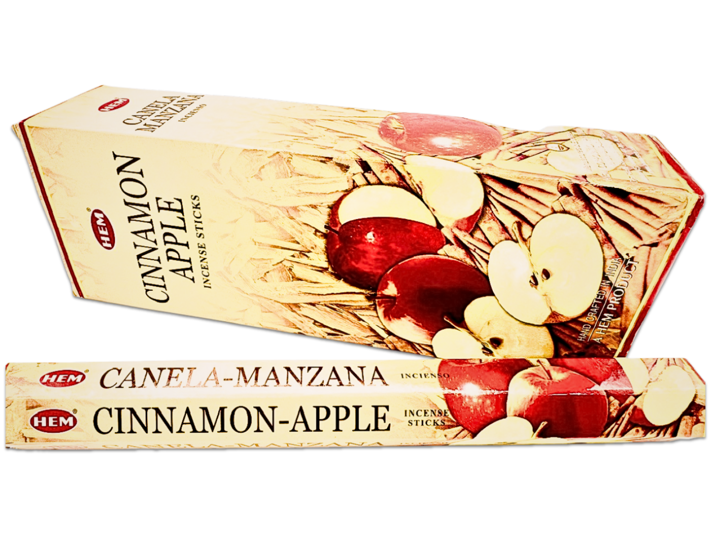 HEM Cinnamon Apple Hexa wierook heeft een warme, kruidig-fruitige geur waarin zoete gebakken appel wordt gecombineerd met verwarmende kaneel. De geur doet denken aan een gezellige keuken en wordt vaak gebruikt om een huiselijke, uitnodigende sfeer te creëren in winkels, salons, cafés, yogastudio’s en woonruimtes, vooral in de herfst en winter.