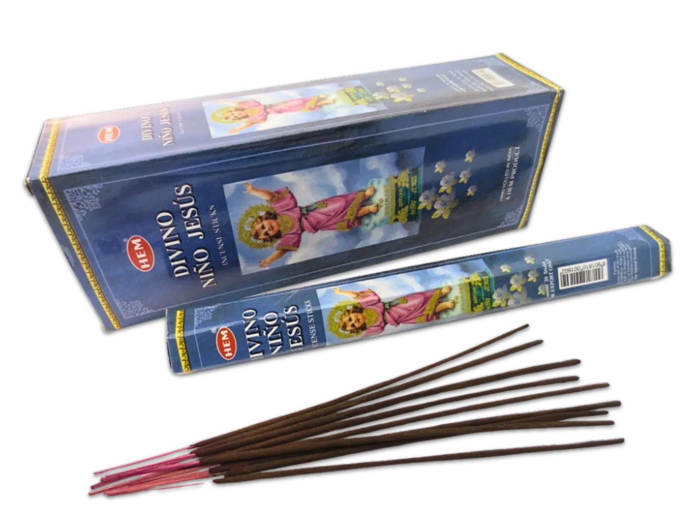 HEM Divino Nino Jesus Hexa wierook heeft een zachte, zoete geur met bloemige en licht poederige tonen. Deze wierook is verbonden met het Kindje Jezus en wordt vaak gebruikt tijdens gebed, contemplatie en devotionele rituelen om een warme, liefdevolle en ontspannen sfeer te creëren in woningen, kapellen, studio’s en spirituele ruimtes.
