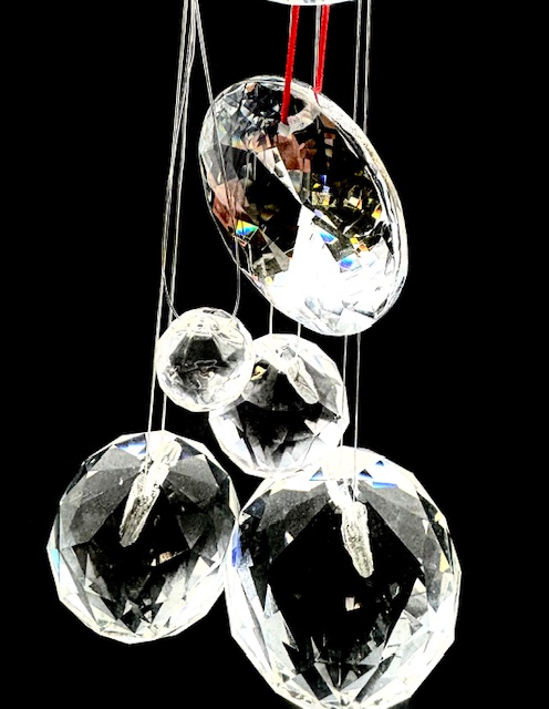 De combinatie van ronde en ovaal geslepen kristallen zorgt voor extra helderheid en glans, terwijl het hangende ontwerp ervoor zorgt dat elk element subtiel beweegt en fonkelt in het licht. Perfect om op te hangen bij een raam, in een serre of als stijlvolle decoratie in woonruimtes.
