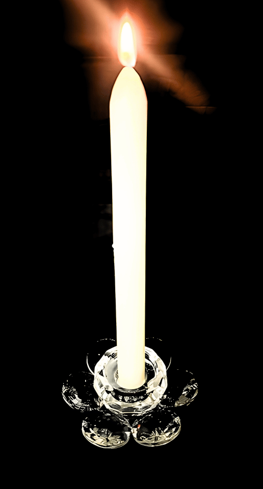 Lage kandelaar van kristalglas in de vorm van een lotusbloem, met zes facetgeslepen ronde “blaadjes” rondom een verhoogde houder voor een smalle dinerkaars. Het heldere kristal weerspiegelt het kaarslicht en zorgt voor een zachte, sprankelende glans op altaren, eettafels, in praktijkruimtes of etalages. De houder wordt zonder kaars geleverd zodat u zelf een passende (LED-)dinerkaars kunt kiezen.