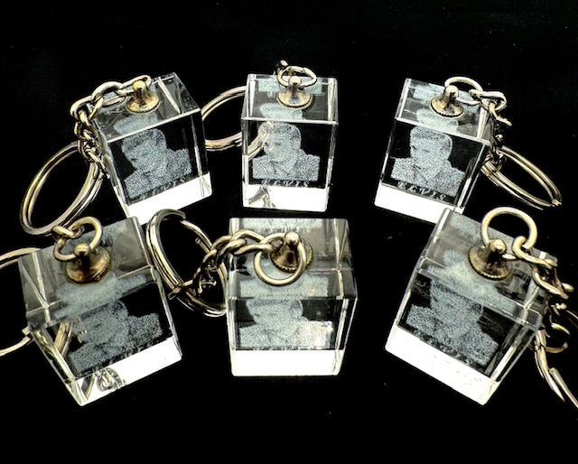 Groothandel – Kristallen Elvis Sleutelhanger Set – 3D Gegraveerde Glazen Kubus (6 Stuks)