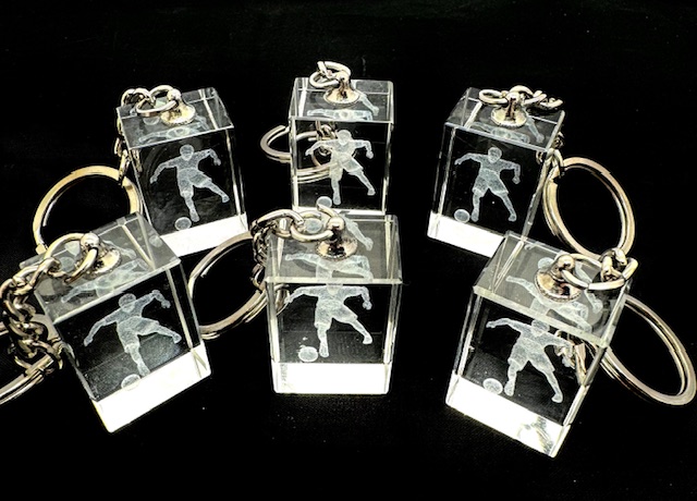 3D laser-gegraveerde voetbalkind in glas