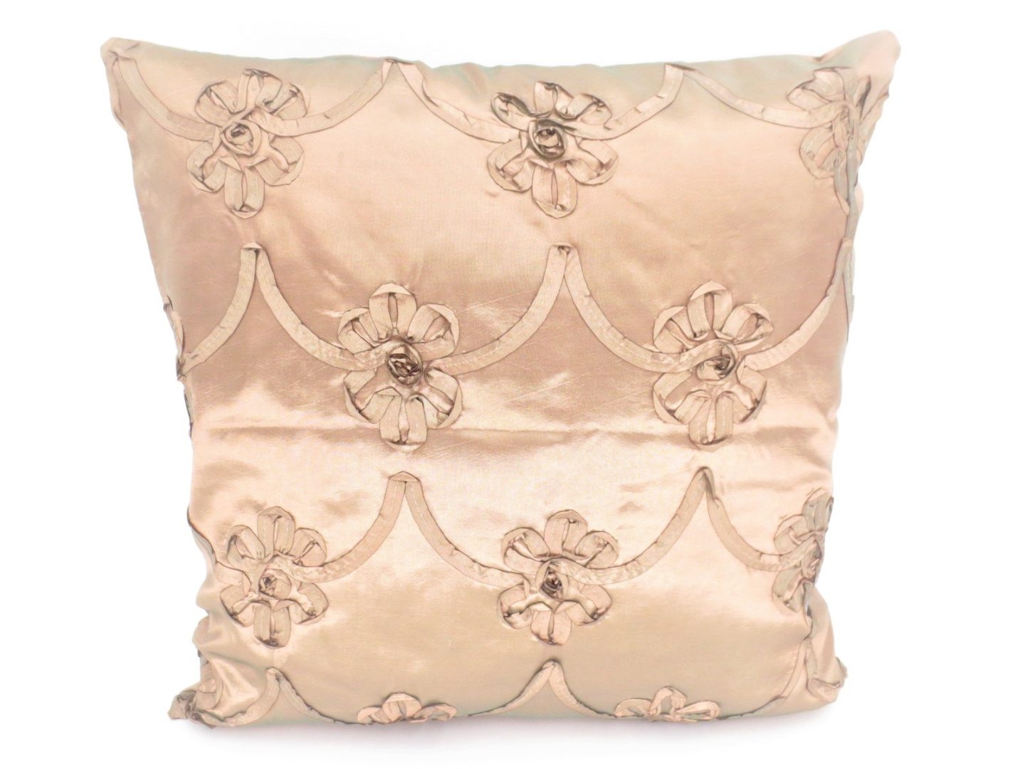 Kussensloop #10 goud/bruin Prachtige kussensloop met bloemetjes erop genaaid die met elkaar verbinden. Er zitten 2 kussenslopen per pak. Ook verkrijgbaar in andere kleuren. Zonder vulling!