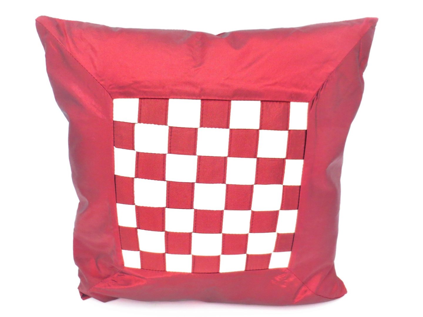 Zeer leuke kussensloop,het midden van de kussensloop is gevuld met wit/ donker rode ruitjes