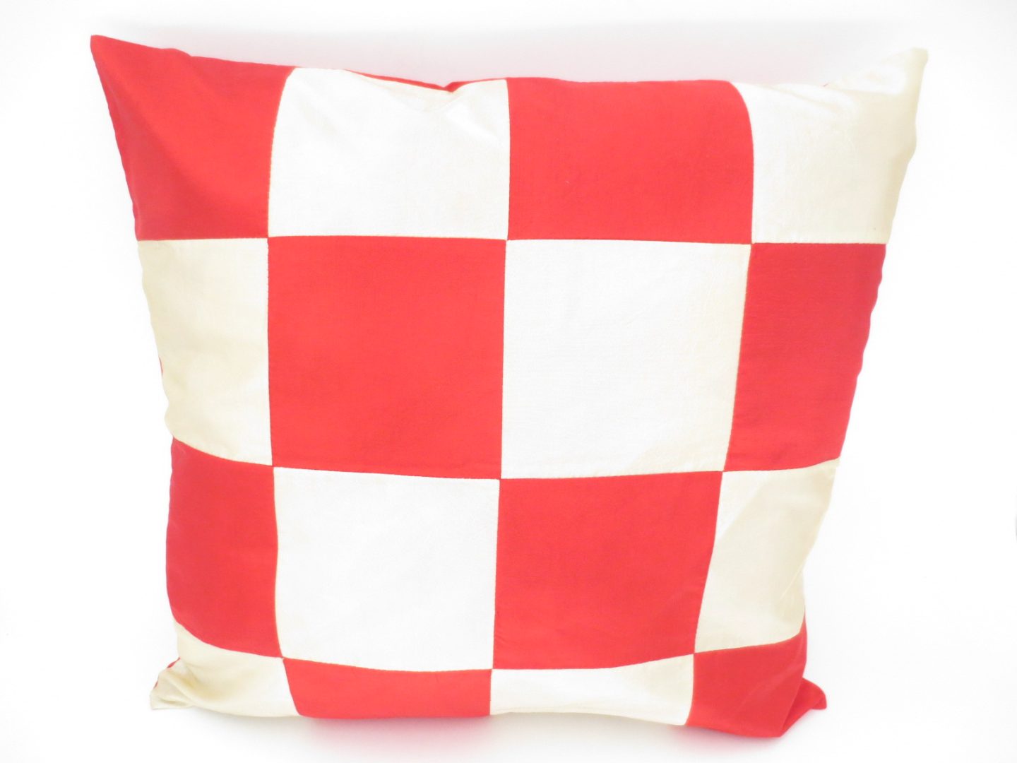 Zeer leuke kussensloop als decoratie voor op de bank in uw woonkamer. Het kussensloop is verdeeld in vierkantjes met de kleuren rood en wit.