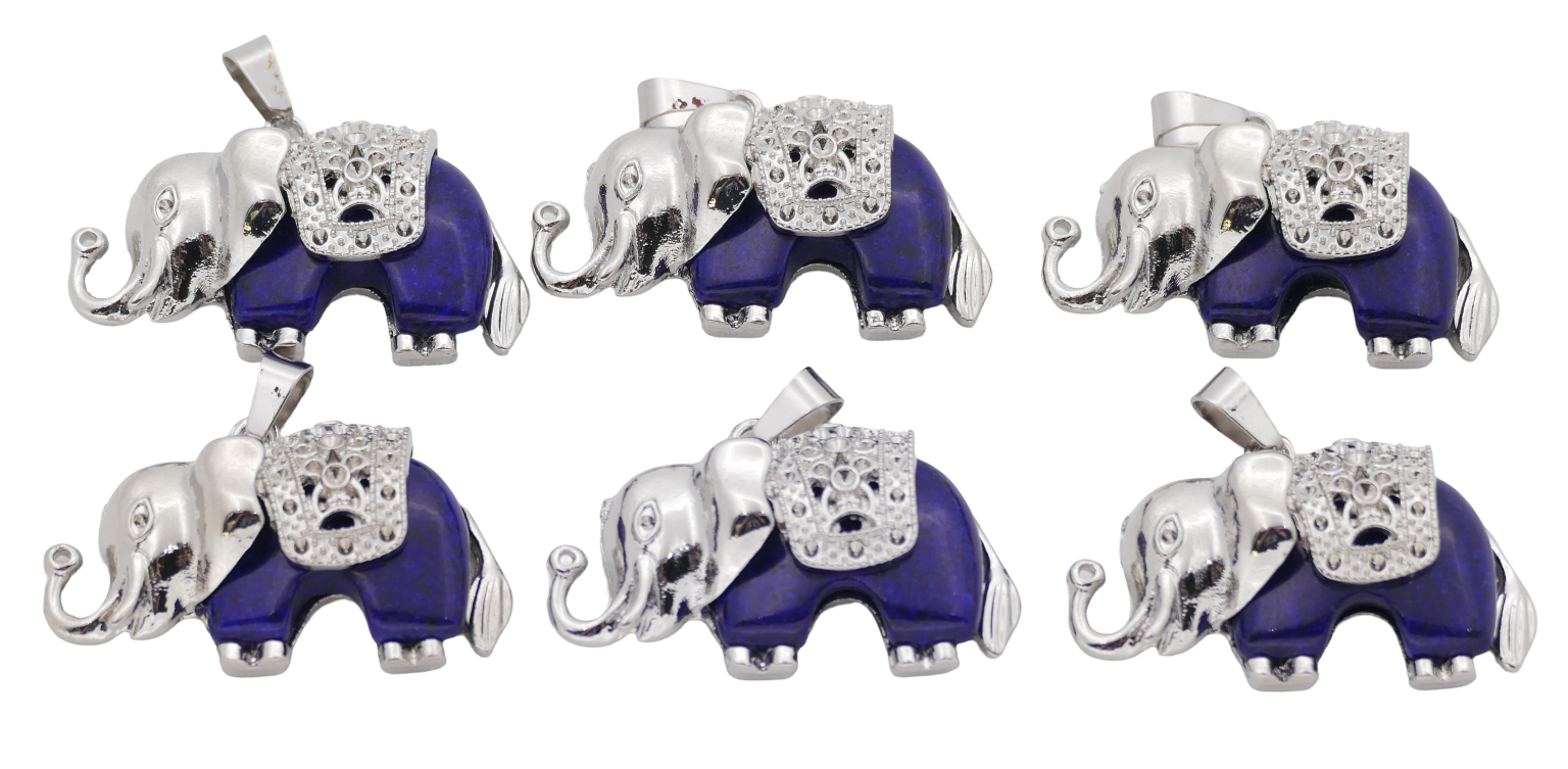 Groothandel – Lapis Lazuli Olifant Edelsteen Hangers (Set van 6 Stuks)
