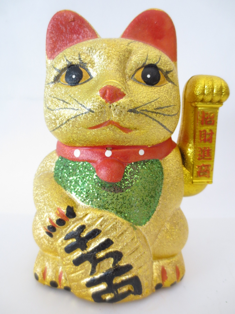 Maneki-Neko-beeldje. Gemaakt van hars en