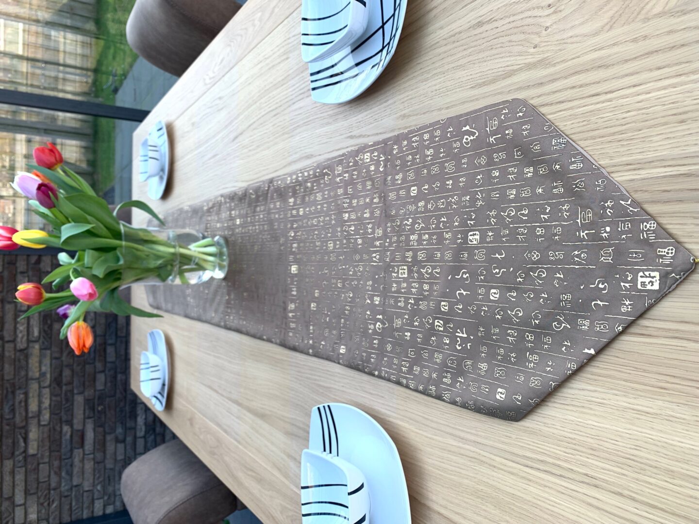 Elegante geborduurde tafelloper – Grauleurige decoratieve tafelloper
