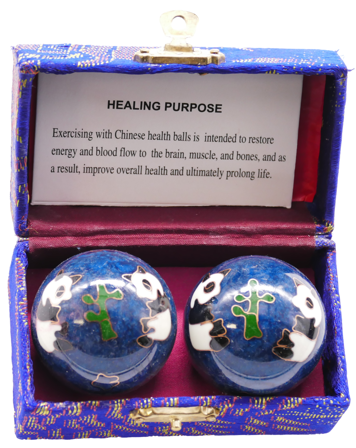 Verbeter uw welzijn met Meridiaankogels, prachtig vervaardigd in een rustgevende blauwe kleur met zes Yin Yang-symbolen. Deze therapeutische ballen balanceren uw energie, bevorderen ontspanning en harmonie.
