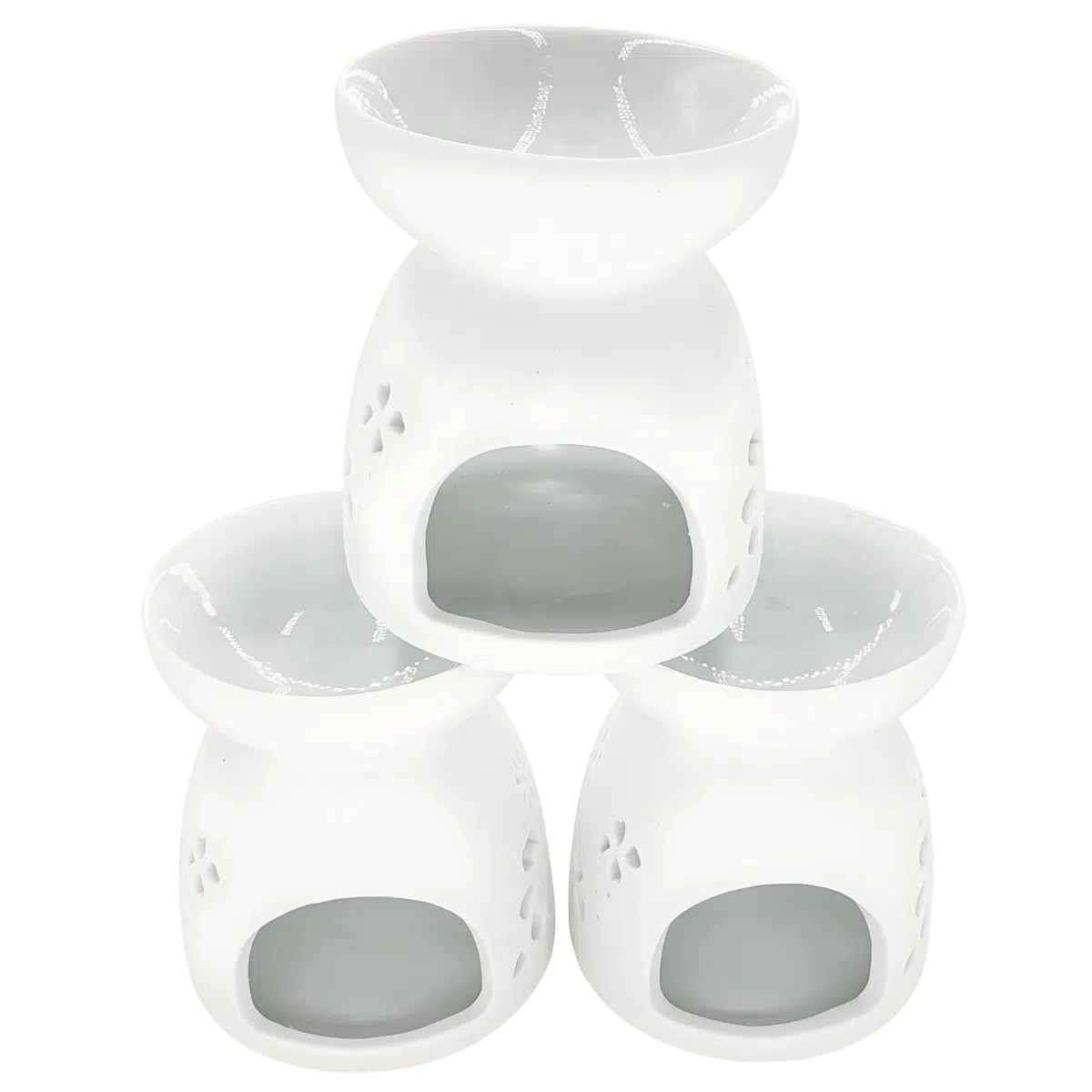 Keramische oliebrander bloemen en sterren wit