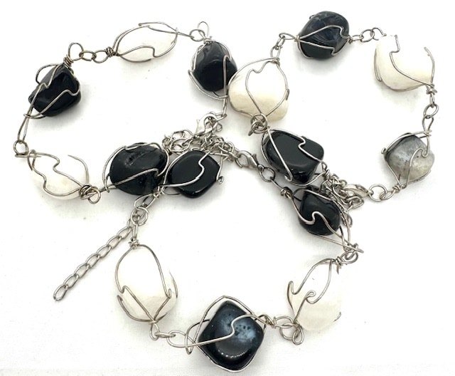 Groothandel Gepolijste Edelsteen Armband Draadgewikkeld – Onyx & Milky Quartz