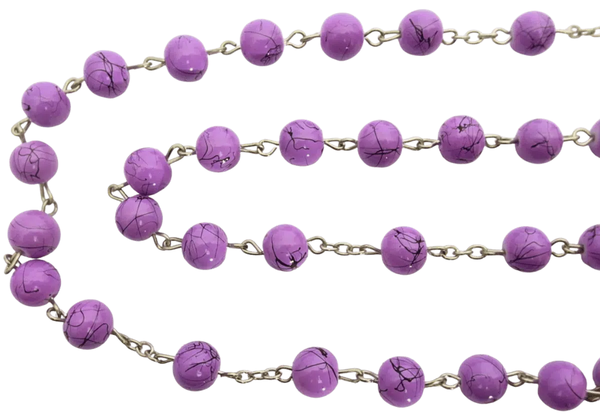 Deze ketting heeft een stalen ketting en kruis met paarse ronde glazen kralen. Erg mooi!