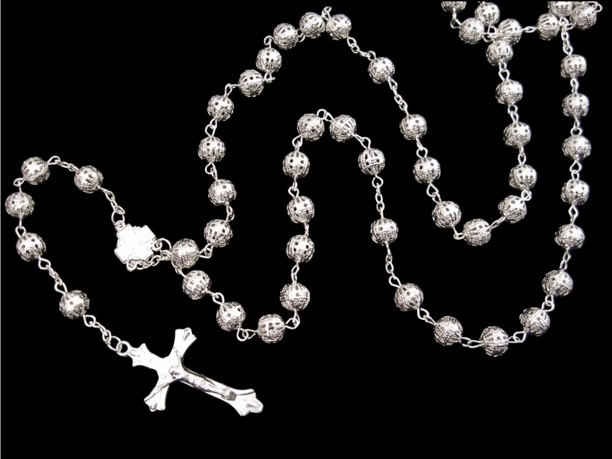 Rozenkransen zijn momenteel erg populair. Een rozenkrans bestaat uit een ketting van ronde kralen en een stalen kruis. Deze ketting heeft zilver ronde kralen.